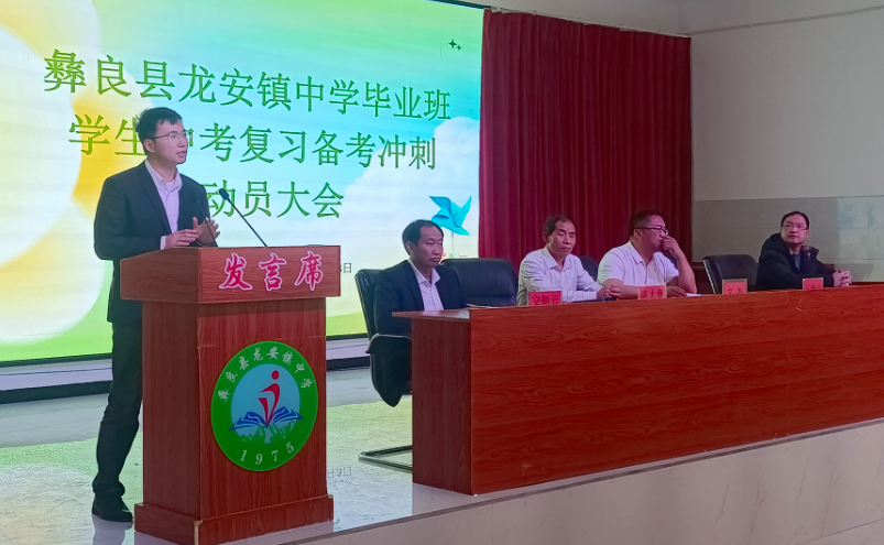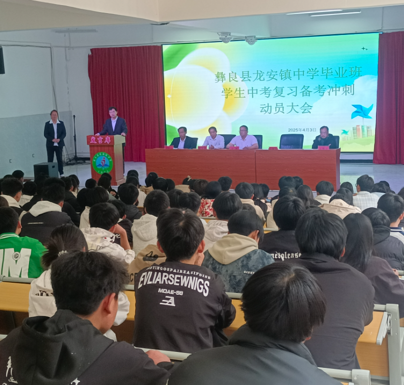 2025年4月3日下午,龙安镇中学初中毕业班员工中考复习备考冲刺动员大会在龙安镇中学大礼堂举行,我支部博士生党员王豪吉同志作为特邀嘉宾参加动员大会并发言。