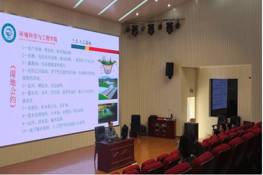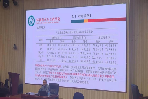 黄建洪老师以人工湿地作为实例,通过污水处理及工程化应用技术研究的展望,揭示了能源与环境的关联性。其间他为大家介绍了湿地的定义与分类,阐述了人工湿地净化原理、人工湿地技术特点等基本理论知识。黄老师注重理论与实践的结合,为在座师生详细介绍了研究项目与工程实例,系统性地为大家分析了人工湿地目前存在的问题(如易堵塞、冬季运行问题、湿地植物的处置与资源化利用等),也为大家指明了研究方向与展望。