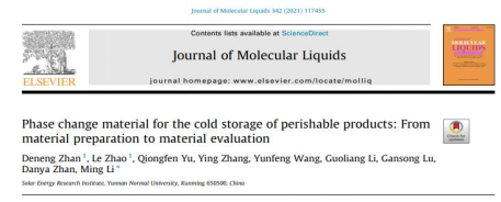 2018级新能源科学与工程专业本科生詹德能近期以第一作者在《Journal of Molecular Liquids》(中科院二区,IF=6.165)发表了“用于冷藏易腐产品的相变材料:从材料制备到材料评价”的论文,指导教师/通讯作者为课题组李明教授。该实验研究了新型相变材料的制备、表征和改性以及材料的循环利用对热物性的影响,所研究的新型相变材料在-4至-6℃的水果和海鲜冷藏运输系统中具有相当大的实际应用前景。詹德能同学作为项目负责人,目前主持并开展2020年度老员工创新创业训练计划项目《应用于冷链物流及空调系统的相变储能材料的制备及研究》,主持和参与多项与学科相关的创新创业竞赛并获奖。
