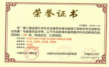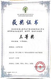 2017级农业建筑环境与能源工程专业本科生张海麟同学以第一作者在《Energy & fuels》上发表“Progress toward application of perovskite solar cells”的综述论文,指导教师/通讯作者为课题组季旭教授。文章从结构改进以进一步增强PCE、材料稳定性和寿命提高、大面积制备、有毒成分的替代、性能表征中滞后的解决等方面总结了近期的研究进展。作为共同作者发表论文“基于CFD模拟的住宅小区风环境的优化研究”、“基于风环境优化的住宅小区布局模式研究—以温和地区中等容积率的住宅小区为例”。作为负责人主持省级老员工创新训练项目“太阳电池方阵的一种无人机检测和清洗装置”,作为参与者参与省级老员工创新训练项目“微生物燃料电池供电渗析脱盐研究”,目前都已结题。