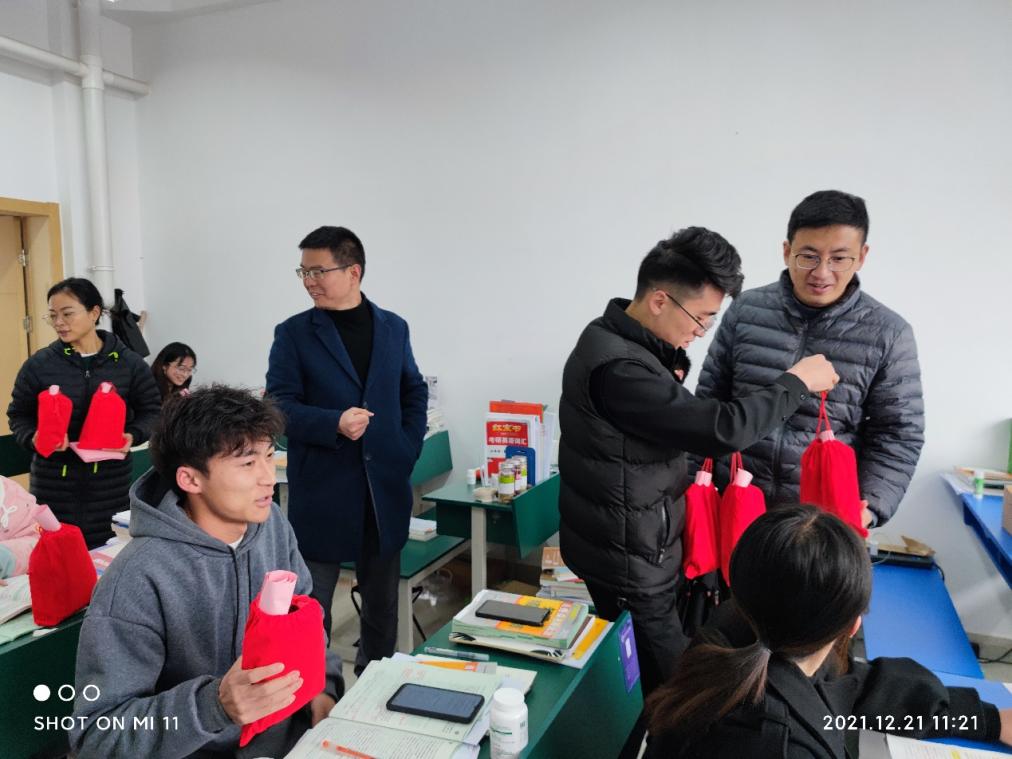 临近2022年全国硕士研究生招生考试,为鼓励公司考研学子增强信心,取得佳绩,12月21日上午,公司党委书记刘莹、经理徐锐、副经理陈玉保、副书记范荣康以及辅导员杨红、杨思霞等老师走进公司考研自习室,代表全院师生看望慰问复习备考的考研学子。