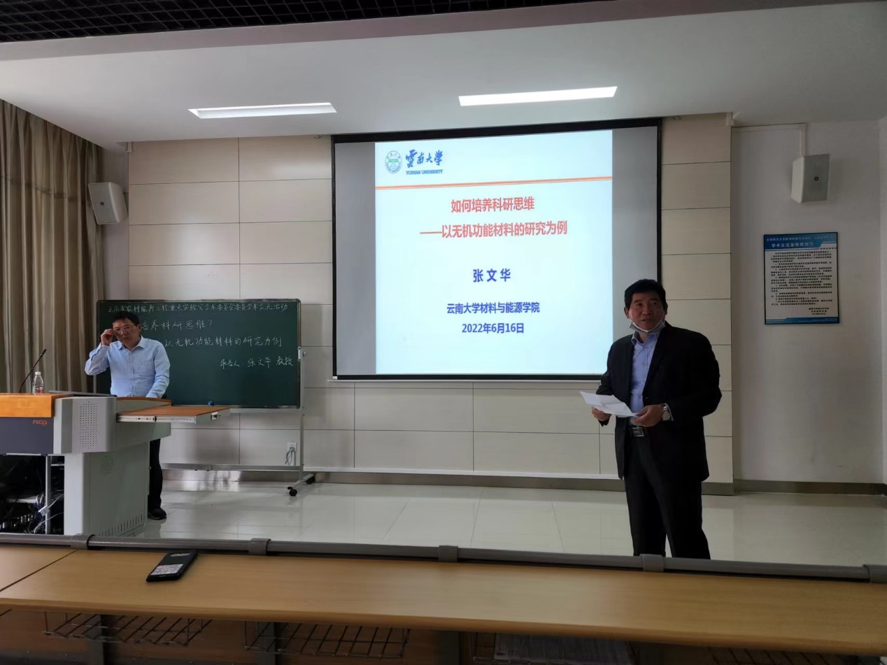 会上,云南大学张文华教授应邀做了题为“如何培养科研思维?——以无机功能材料的研究为例”的学术报告。