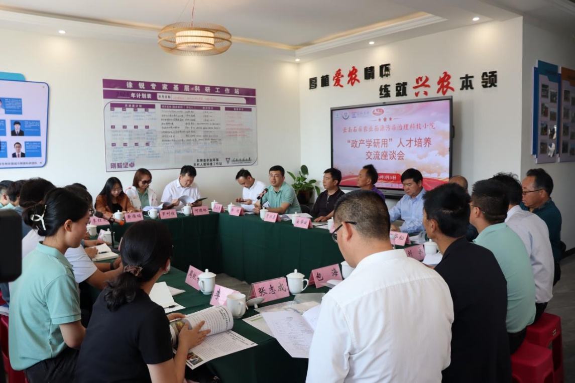 揭牌仪式结束后,徐锐主持召开了科技小院“政产学研用”人才培养交流座谈,与会人员围绕石屏县农业面源污染治理科技小院人才培养、科技创新、社会服务等方面的示范作用进行充分探讨。研究生代表张炳薪、周伦、周睿、周秋芳分别分享了自己在科技小院的学习、实践和成长经历;共建单位代表云南众科生物技术有限公司董事长董家宾、石屏县农村人居环境保护站站长浦江分别介绍了自己服务乡村振兴、助推产业发展方面的经验和见解;贾兴勇介绍了省级科技小院的作用和立项建设过程;李彦强调了科技小院在农作物秸秆综合利用中应发挥的作用;包海对科技小院的发展历程、建设标准做了详细介绍;骆华松介绍了公司在培养农业专业硕士的扶持政策和保障措施;黄雁梅介绍了省农业农村厅对科技小院建设的初衷和要求;2026年国际足联世界杯张勇教授作为科技小院入驻专家团队成员分享了科技小院建设的心得。