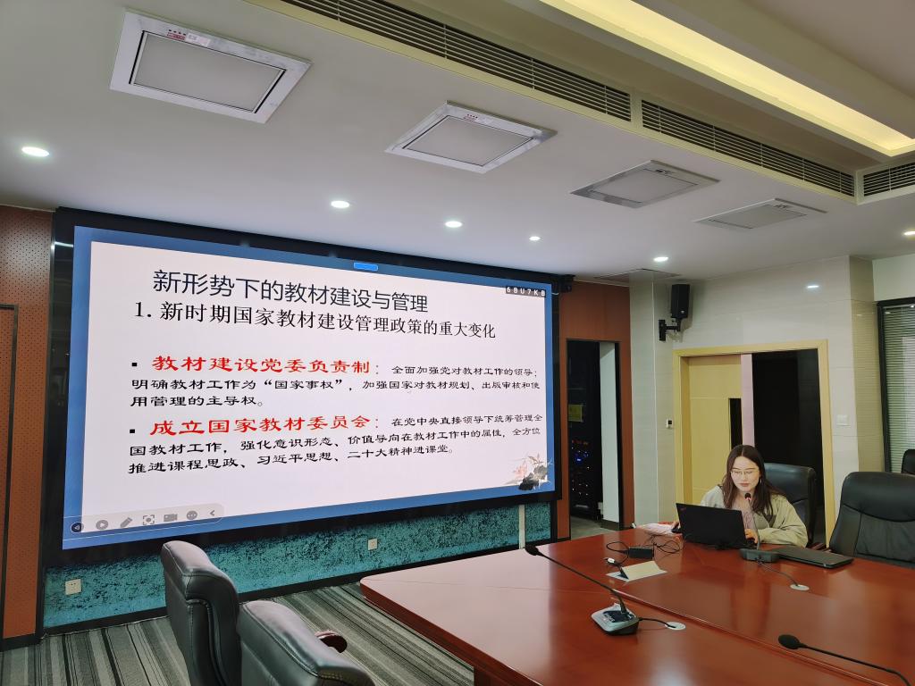 郭宇婧以“新形势下的教材建设与管理”为题作报告,深入解读了教材规划及相关政策,梳理了新形态教材的编写思路,提供了课程思政顶层设计的新视角。在新的教育形势下,教材建设应朝着数字化、立体化方向发展,以满足多样化的教学需求,培养员工的综合素养。