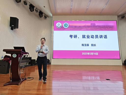 首先,陈玉保经理做动员讲话。他从自身实际出发,分享了农业机械化工程专家、中国工程院院士罗锡文、陈经理的博士生导师宁平教授,以及陈经理本人考研求学经历,激励大家要行动起来,研途人生,展望未来。他指出,考研是学习的再学习,是有效提升就业竞争力、拓宽职业路径、实现自我价值的重要途径,同学们要以求学深造夯实未来职业发展根基。希望2026届全体毕业生能够以此次动员会为出发点,明确考研目标,制定详细规划,积极努力备考,成功上岸。