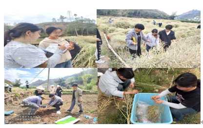 砥砺深耕,履践致远: 实习期间,同学们在公司张无敌、王昌梅、杨斌等老师及企业导师的带领下,投身禄丰市绿色种养循环、秸秆综合利用等项目,深入田间开展油菜、小麦、燕麦等作物的测产及草谷比测定工作。通过分组协作,同学们完成了从田间取样、称重到产量计算的完整流程,测定了土壤理化性质,观察植株长势,科学分析草谷比,为种植地块进行“体检”,并提出了针对性的土壤改良建议,充分展现了新时代青年的责任担当。