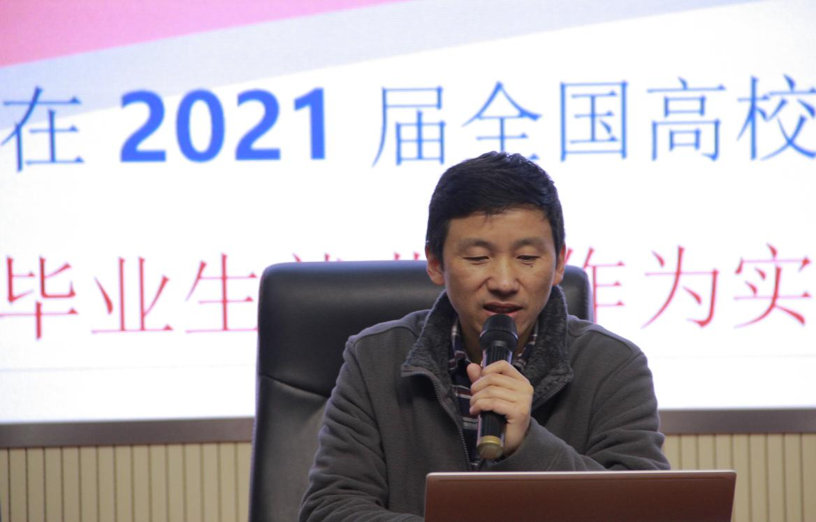 首先由范荣康老师为2021届毕业生做动员。范老师从总体上介绍了2021年高校毕业生就业的形势和相关政策,党和政府高度重视毕业生就业,各级相关部门积极采取各项措施促进就业。他还从2021届毕业生规模持续增加,就业岗位供给面临挑战,老员工对就业形势不适应以及存在“慢就业”“不就业”等方面问题讲述了2021年就业存在的挑战与机遇。希望同学们关注教育部24365就业服务平台、“云师就业”微信公众号等,及时获取就业信息,调整好状态积极就业。范老师对公司2021届毕业生寄予厚望,预祝大家都能找到满意的工作。