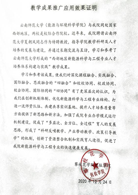 攀枝花公司应用本教学成果证明材料
