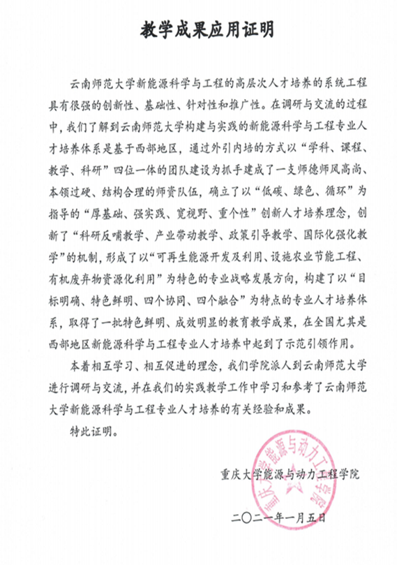 重庆大学应用本教学成果证明材料