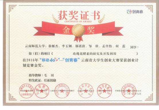 徐雁杰等荣获2016年“移动4G+”“创青春”云南省老员工创业大赛“金奖”